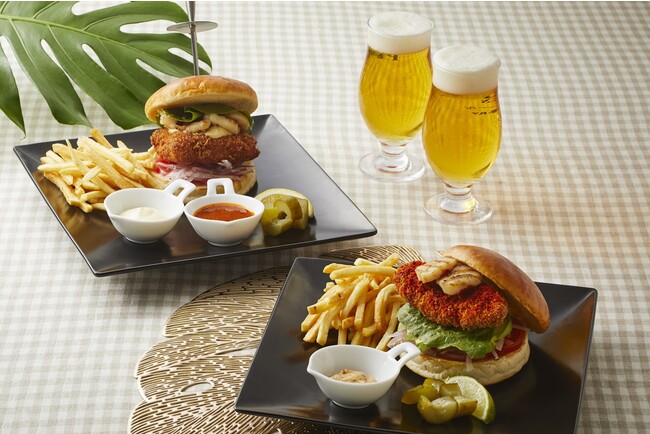 1F「フォンテーヌ」では、夏らしくシーフードを使用したビールとも好相性なバーガーが新登場。