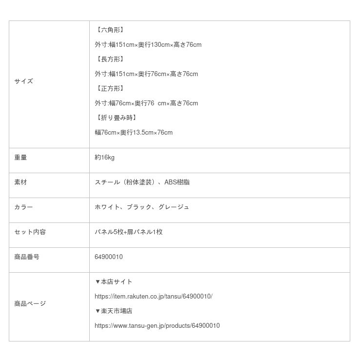 また、お部屋のスペースに合わせて〈長方形〉 〈L字型〉 〈六角形・八角形〉といった形で使うことも可能です。2セット以上をつなぎ合わせてより大きなサイズでご使用いただくことも可能です。