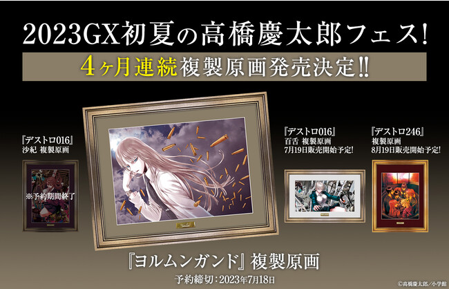 7月19日より『デストロ016』百舌 複製原画、8月19日より『デストロ246』複製原画が販売開始予定です。