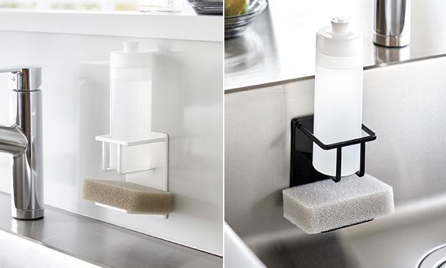 洗剤とスポンジをひとまとめにできるホルダーや、マグネットで取り付けできるダンボールストッカーなど、新商品発売。