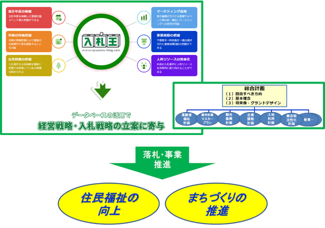 こうした入札事業を推進、実施するのは主に民間事業者ですが、その事業受託までの過程では入札情報、落札情報、予算書等の“みらい”の情報や官公庁・地方公共団体が策定する住民のためのまちづくり・福祉づくりの基本構想、グランドデザインなど、多角的な情報の把握が求められます。入札に臨む上で、上手に落札するためには、専門的な知識や知恵が必要なのです。