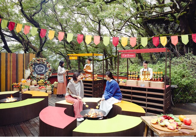熱海の絶景と温泉に浸るリゾートホテル「星野リゾート リゾナーレ熱海」では、2023年9月1日~11月30日、ホテル内にある「森の空中基地 くすくす」にて静岡にちなんだミカンや、旬のフルーツを焚き火で焼いて味わう「フルーツバーベキュー」を開催します。静岡県の伊豆地域で栽培が盛んなミカンや、秋の味覚である旬のフルーツを用意。さらに、香ばしく焼けたフルーツとマシュマロ、チョコレートをビスケットではさむと、自分だけのオリジナルフルーツスモアが完成します。また、フルーツバーベキューをより楽しんでもらえるよう、フルーツをテーマに華やかな色で装飾されたフルーツブースとフォトスポットが登場します。バーベキューにぴったりな心地良い季節に、フルーツの新たな食べ方を発見できるイベントです。