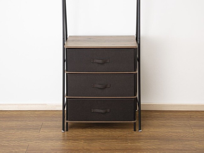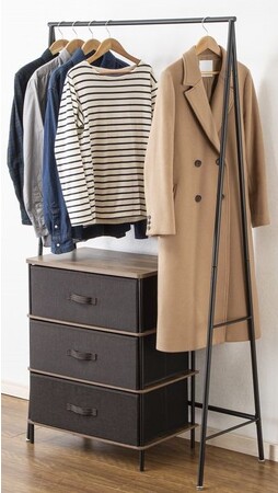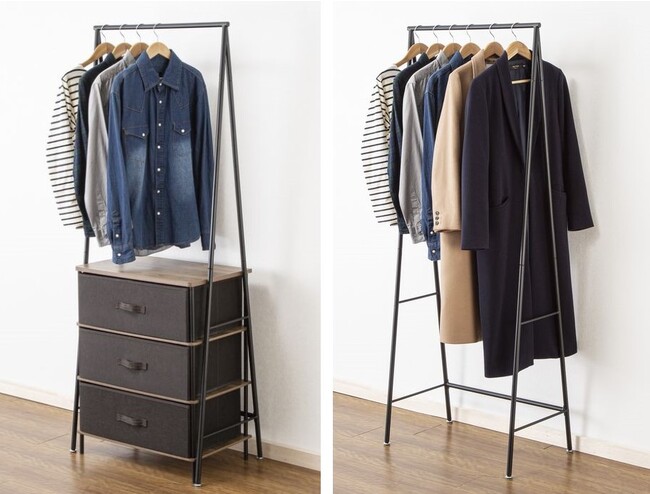 チェストを下に置いて省スペースで衣類を大量に収納したり、そのまま使って丈の長いコートをかけたり、衣類の量や使用シーンにあわせて使い分けることが可能です。ぜひお試しください。
