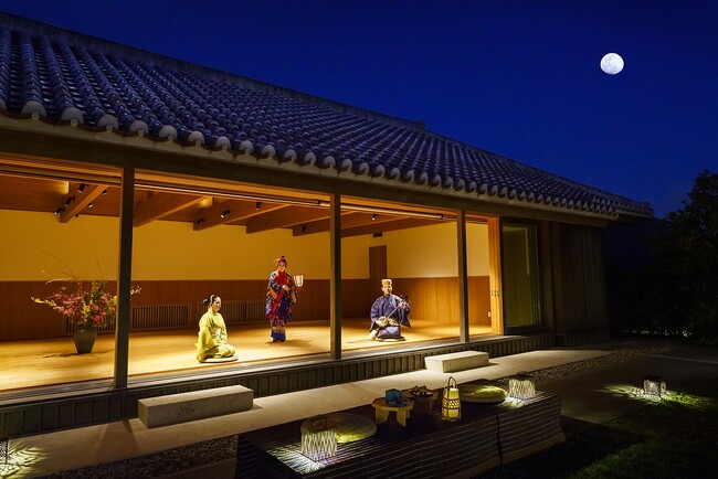 各施設が独創的なテーマで、圧倒的非日常を提供する「星のや」。沖縄県・読谷村にある滞在型リゾート「星のや沖縄」では、2023年10月23日~31日に、秋の夜長を優雅に過ごす「琉球秋夜の調」を開催します。星のや沖縄内の「道場」とその庭を貸し切りにするプライベートな空間で、ユネスコ無形文化遺産の宮廷芸能「組踊」を鑑賞します。組踊は、琉球王朝時代に中国皇帝の使者「冊封使(さくほうし)」をもてなす儀式「重陽の宴」で初めて披露された琉球文化を代表する伝統芸能です。本プログラムは、その歴史に倣って旧暦9月9日頃の月明かりが美しい期間に開催します。鑑賞前には、組踊特有の「唱え」を体験するワークショップを行う他、組踊の歴史や物語について学びます。心地よい海風を感じながら、沖縄最高峰の総合芸術を鑑賞する、優雅で特別な時間を過ごします。