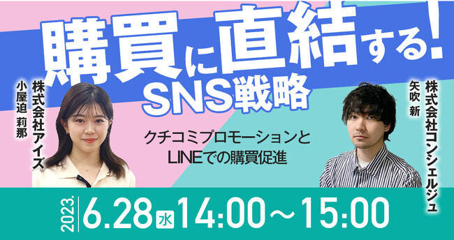 クチコミマーケティングのプラットフォームを運営する株式会社アイズ(所在地:東京都渋谷区、代表取締役社長:福島範幸、東証グロース:5242)は、6月28日(水)に開催される無料オンラインセミナー「購買行動を促進する!SNS戦略 ~クチコミプロモーションとLINEでの購買促進~」に登壇します。