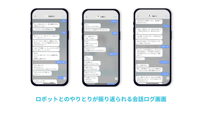 SELFアプリは、個性豊かなAIキャラクター達(以下、AIキャラクター)とユーザーが日常的に会話することで、ユーザーを理解し、生活サポートやメンタルケアを行うスマートフォンアプリです。