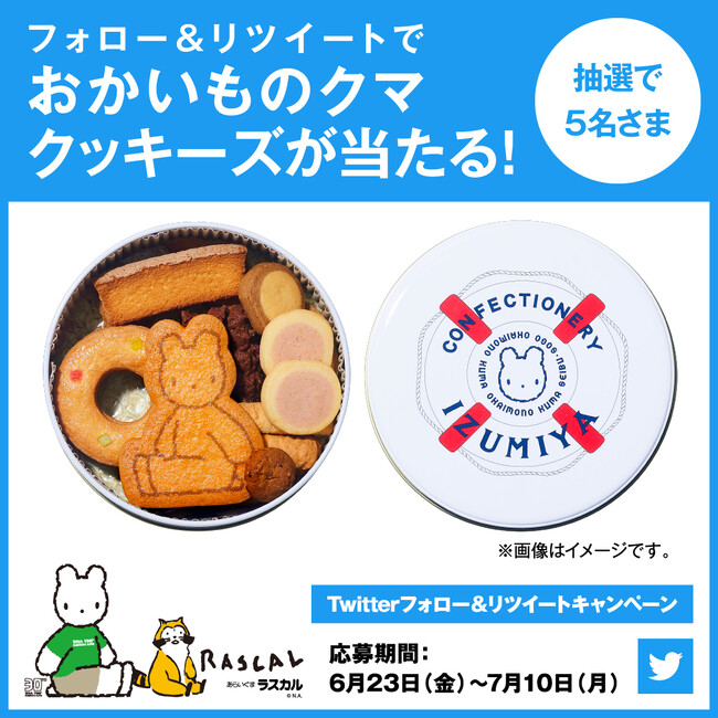 会期中、対象Twitterアカウントをフォローのうえ、当該キャンペーンツイートをリツイートした方の中から抽選で各5名さま(総計60名さま)に、西武・そごう限定「おかいものクマクッキーズ(150g・1缶)」をプレゼントいたします。