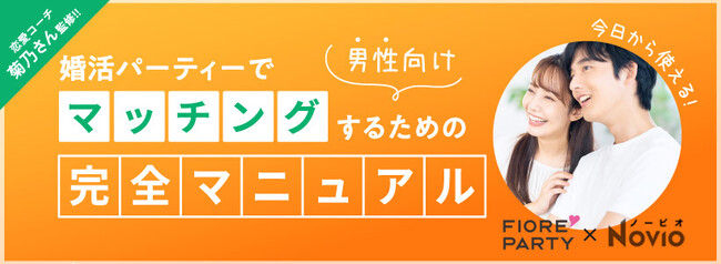 株式会社トータルマリアージュサポートが運営する婚活イベントサイト『FIORE PARTY(フィオーレパーティー)』は、この度、株式会社KADOKAWAが運営する出会い・デート・マッチングアプリ攻略など男性の恋愛に役立つ情報を女性目線で届けてくれる『NOVIO(ノービオ)』と、恋愛婚活コンサルタント菊乃さんと三者でコラボレーションをし、【婚活パーティーでマッチングするための完全マニュアル(男性向け)】を作成しました。