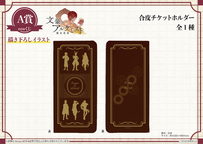 合皮チケットホルダーには6人の文豪のシルエットをデザイン。色調も落ち着いていますので、『文豪とアルケミスト』の雰囲気を感じつつ普段使いにもピッタリです♪