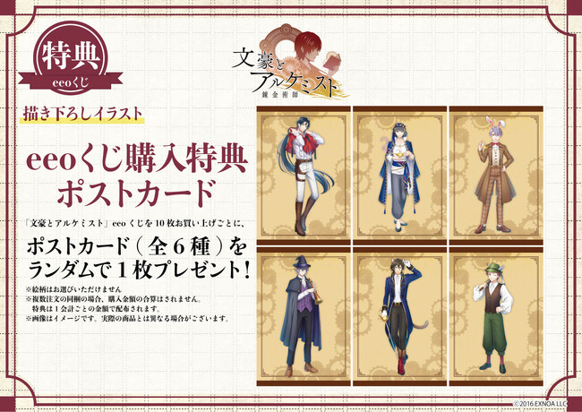 『文豪とアルケミスト』の「eeoくじ」をご購入いただいた方には、購入特典としてポストカード(全6種)をプレゼント!