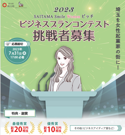 女性起業家の成長を支援し、埼玉県から国内外で活躍するロールモデルとなる女性起業家を輩出することを目的としたビジネスプランコンテストを実施します。