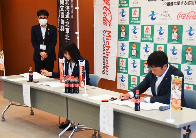 みちのくコカ・コーラボトリング株式会社(本社: 岩手県盛岡市、代表取締役社長: 谷村 広和、以下「当社」)は、このたび、青森県東津軽郡外ヶ浜町(町長: 山崎 結子)との間で、「北海道・北東北の縄文遺跡群」の世界文化遺産登録PR推進に関する協定を締結することとし、6月23日(金)に外ヶ浜町役場において締結式を開催いたしました。