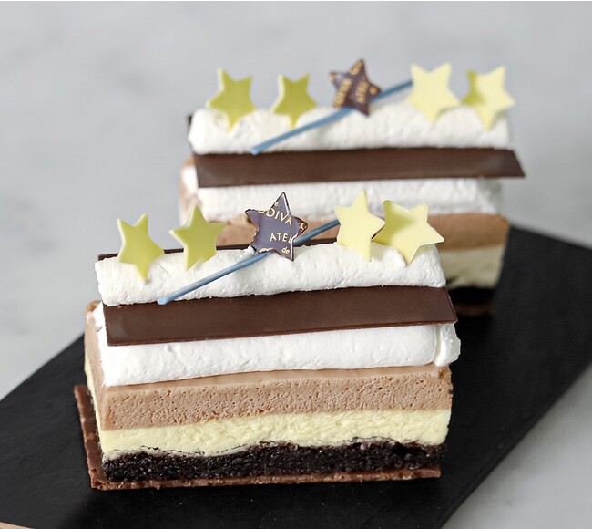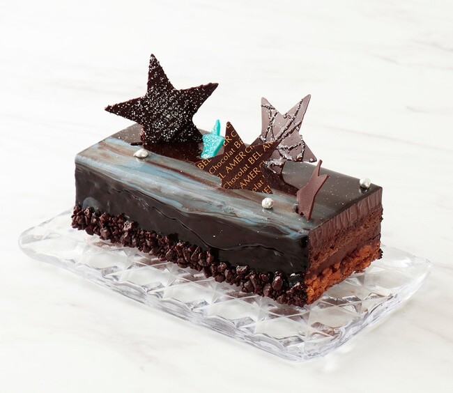 ミルクチョコレートムース、レモンムース、レモンホイップクリームをレイヤーにした爽やかなケーキ。甘酸っぱくもミルキーな味わいで、七夕の天の川をイメージしたチョコレートをトッピングしました。