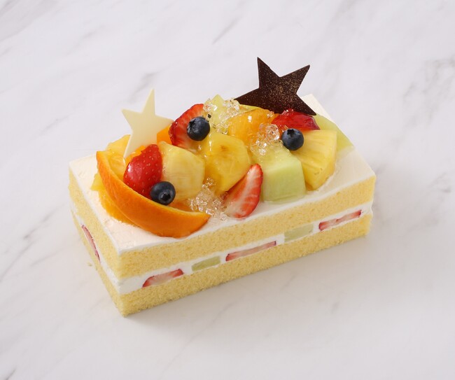 メロンと苺をサンドした夏限定のショートケーキ。星モチーフのチョコレートをトッピング。