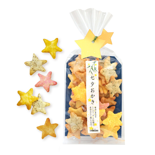 さくっとお米のうまみを豊かに焼き上げたかわいらしい星型のおかきは七夕限定です。