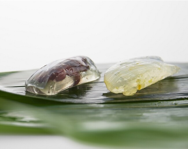 夏の夜に輝く星を透きとおる琥珀羹にとじこめ、風味豊かな小倉羹と合わせた二層羊羹。