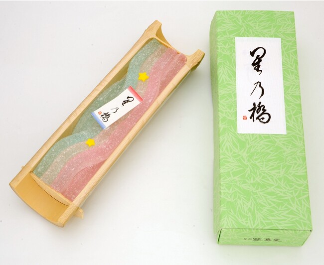 天の川を錦玉で、織姫と彦星を雲平で表した和菓子です。