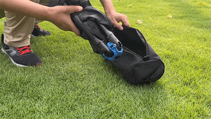 使用しない時は収納袋に入れるとコンパクトになり、置き場所を選びません。キャンプや釣り、旅行、ハイキングなど、荷物の多いシーンにおすすめです。