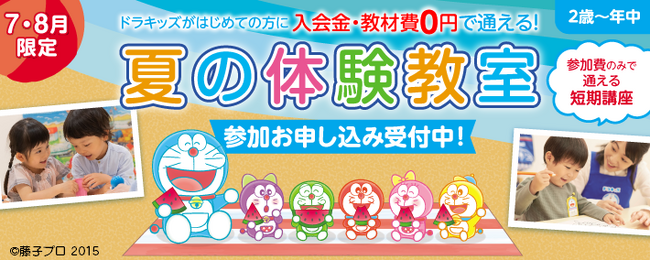 7・8月期間限定 2歳~年中のお子さま対象 できるってうれしい! わかるって楽しい! 「ドラキッズ夏の体験教室」
