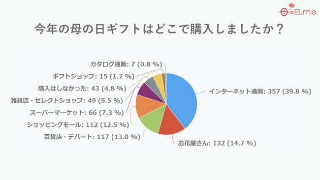 質問:今年の母の日ギフトはどこで購入しましたか?に対する回答結果