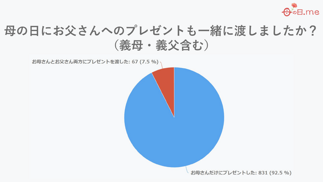 質問:母の日にお父さんへのプレゼントも一緒に渡しましたか?に対する回答結果