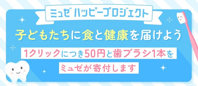 全国に173店舗(※1)のサロンを展開し、売上・店舗数(※2)、通いやすさNo.1(※3)美容脱毛サロン『ミュゼプラチナム』とミュゼがプロデュースするデンタルクリニック『ミュゼホワイトニング』は、子どもたちに美味しい食事と歯ブラシを提供する寄付イベントを7月1日(土)より開始いたします。あわせて本活動にご協力いただける飲食店さまも募集いたします。