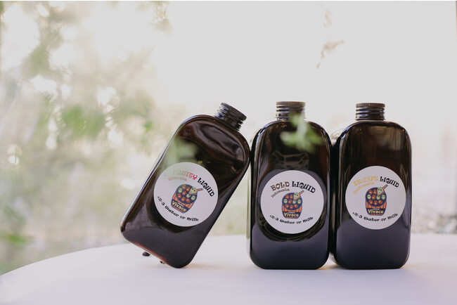 CoffeeRoastVivaceのこだわりとして大切にしている「手作りの高品質」をボトリングコーヒーでも実現するため、製造技術の改善による「超効率的少量生産」を実現しました。これにより、「好みのコーヒー豆・焙煎加減に合わせたボトリングコーヒー」が少量から製造可能となり、今までにない「求める味わいのボトリングコーヒーが極少数で製造できる」というプロセスを独自に構築したものとなります。デザイン有無にかかわらず、OEM/ODMでのご依頼も承ることが可能となります。