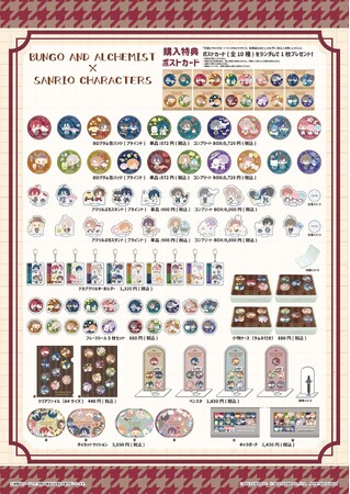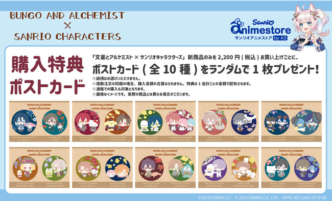 「文豪とアルケミスト×サンリオキャラクターズ」の新商品を2,200円(税込)以上ご購入いただいた方には、特典としてポストカード(全10種)をランダムで1枚プレゼント♪