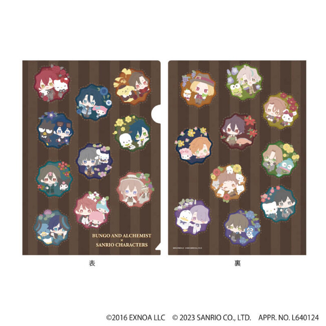 定番グッズのクリアファイルはA4サイズ。表と裏に今回登場した20組の文豪とサンリオキャラクターズのペアが大集合したデザインになっています♪