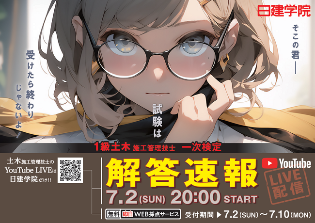 【令和5年度 1級土木施工管理技士 一次検定】試験当日(7/2) 20:00~「解答速報」YouTube LIVE配信!