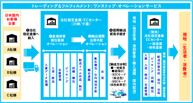 現在は、オフライン領域に加え、オンライン領域における「国内+海外プロデュース力」のEC/D2C(越境/一般貿易)販売、貿易通関・国際物流・倉庫・現地配送等のフルフィルメント・オペレーション」迄のワンストップサービスの提供を強化し、海外進出支援および、海外現地でのEC/D2C販売の体制構築や現地サポートを含めた「総合プロデュース・ビジネス・サービス」を提供。