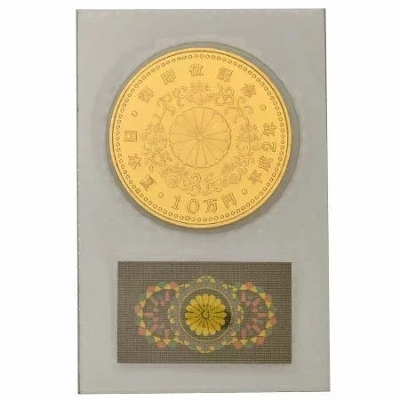 上皇陛下が天皇として御即位されたことを記念して発行された「記念金貨」です。発行枚数は、200万枚。参考として当時の販売価格は、プルーフ金貨11万3300円