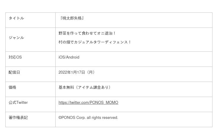 「ポノス株式会社」のプレスリリース