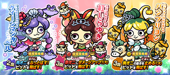 シンデレラ、白雪姫、人魚姫をモチーフにしたベジ丸が目玉キャラとして3体登場!