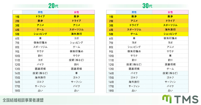 日本一の成婚率を目指す「TMS 全国結婚相談事業者連盟」は、結婚相談所で婚活中の男女999名を対象に「性別・年代別 それぞれの趣味に対する印象」についてアンケート調査を実施いたしました。