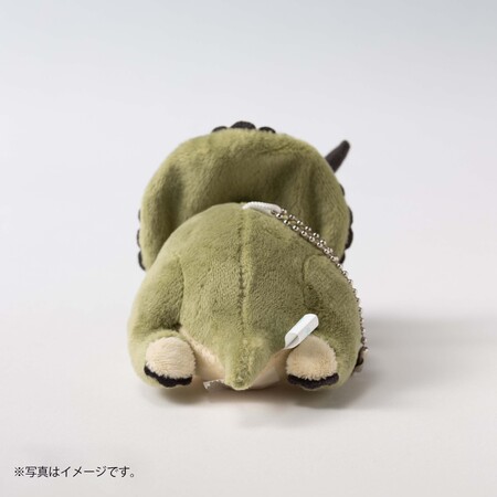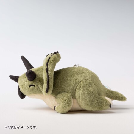 『ディノサン』5巻限定版の特典は、作中に登場する「トリケラトプスのマサル」がちょこんと座ったような姿が愛らしい、史上初の「恐竜の香箱座り」マスコットです。この姿勢は、本作の監修も手掛ける名古屋大学博物館 講師・藤原慎一氏の研究によるトリケラトプスの前肢姿勢復元をモデルとしています。