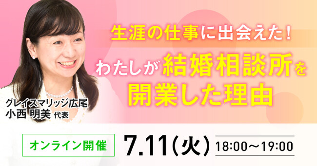 【7月11日開催】結婚相談所開業・副業を検討の方向けオンラインセミナー!女性の開業!【生涯の仕事に出会えた!わたしが結婚相談所を開業した理由】