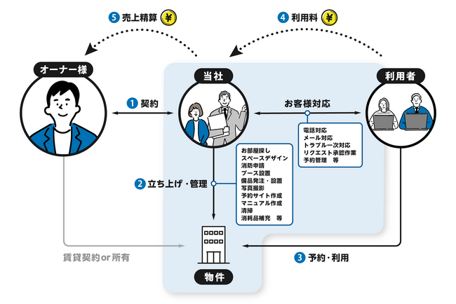 当社は、「不動産の価値を再定義する」をミッションに掲げ、不動産の時間貸し運用を支援する企業です。不動産オーナー様からレンタルスペースの運営業務をワンストップで請け負い、現在全国で900室以上を展開し、累計の予約件数は80万件を超え、多くの利用者様にご利用頂いております。