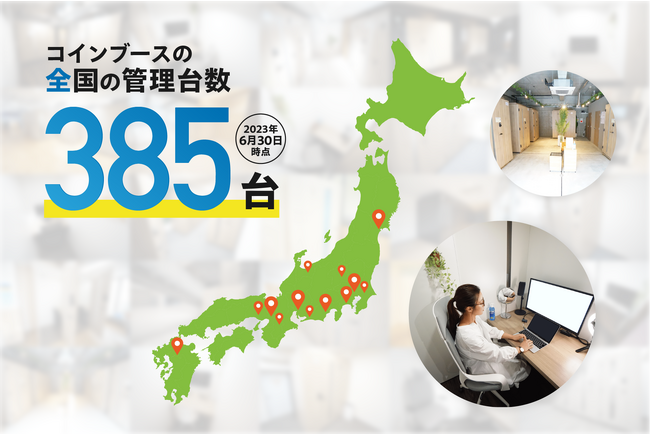 「コインブース運用」とは、1人専用の個室型ワークブースを用いて不動産の収益化を図る方法です。2021年1月からコインブース運用を開始し、2023年6月に累計予約数が20万件を突破しました。現在、全国の管理台数は385台まで拡大しております。