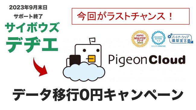 ピジョンクラウド、大好評の「デヂエのデータ移行0円キャンペーン」を2023年8月31日迄延長いたします。