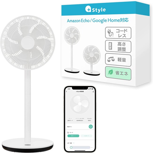 +Style 扇風機 バッテリー搭載 高さ調節可能30時間 コードレス