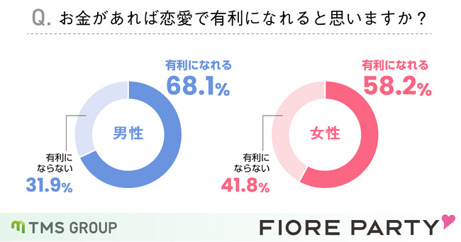 男性の68.1%がお金があれば恋愛で有利になれると思うと回答。