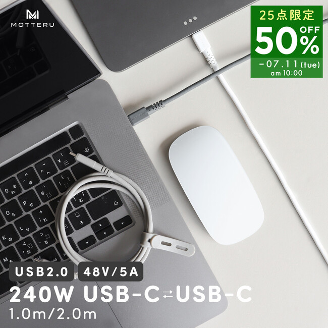 〇***新商品のしなやかで絡まない 240W対応 USB-C to USB-C シリコンケーブルが25個限定50%OFF!