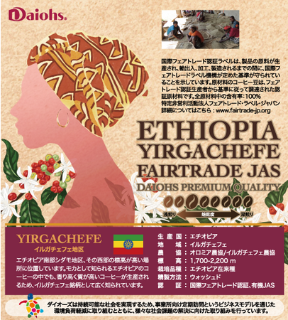 フェアトレード認証コーヒー「ETHIOPIA YIRGACHEFE FAIRTRADE JAS」(エチオピア・イルガチェフェ・フェアトレード・ジャス)が新登場!