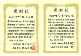 【ライフ】2022年度 障がい者雇用に関する「一般社団法人おおさか人材雇用開発人権センター」からの感謝状の受領について