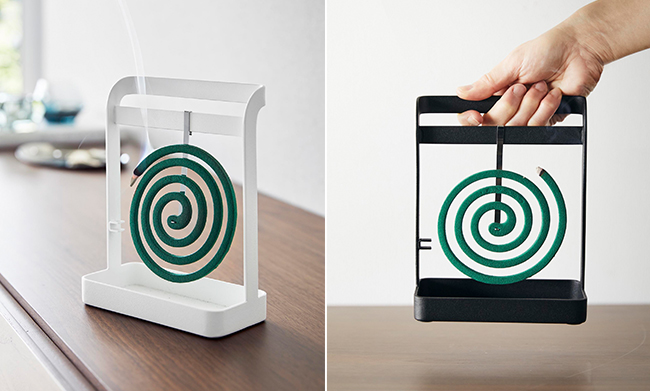 蚊取り線香を立てた状態で使えるスタイリッシュでスリムなハンドル付き蚊取り線香スタンド。