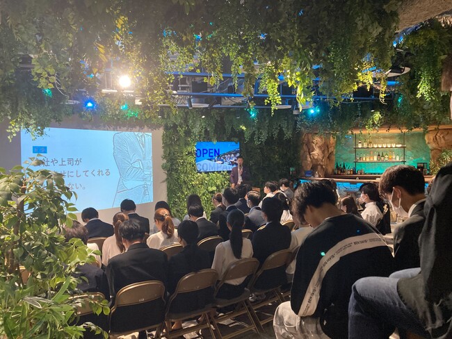 4~5月はオンラインにて説明会を開催しましたが、6月11日(日)には当社オフィスにてOPEN COMPANY(R)(会社説明会)を実施しました。当日は代表近藤によるトップライブ、現場社員との座談会、オフィスツアーなど、当社に直接触れていただく機会を提供。ビジョンや理念への共感、働き方の気づきが生まれるような仕掛けを取り入れた結果、256名が着席、約90%の方が次選考を希望しました。