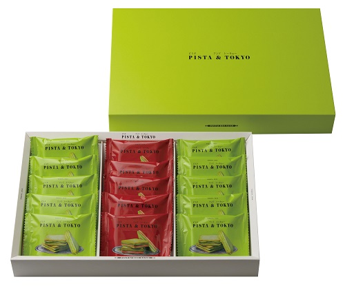 「ピスタチオ&ピスタチオ」 と、フランボワーズチョコレートをプラスした「ピスタチオ&フランボワーズ」の2種。高級感のあるパッケージは大切な方へのお手土産に最適です。