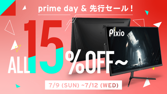 「プライムデー先行セール」「Amazonプライムデー」にて、ゲーミングモニターブランド「Pixio(ピクシオ)」全製品を15%OFF以上で販売