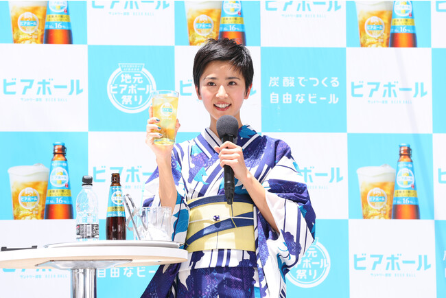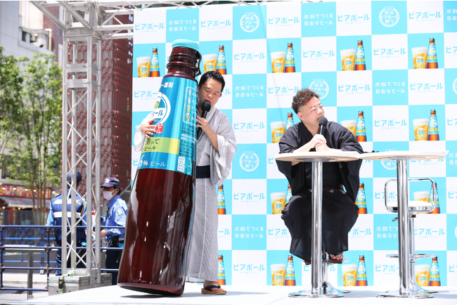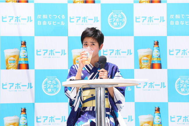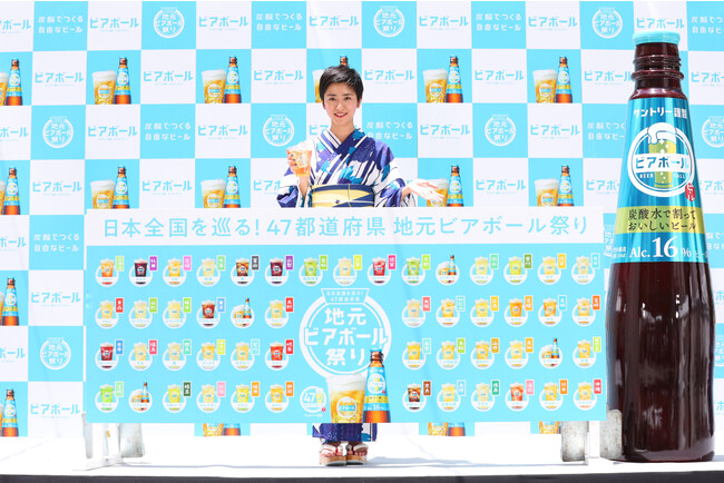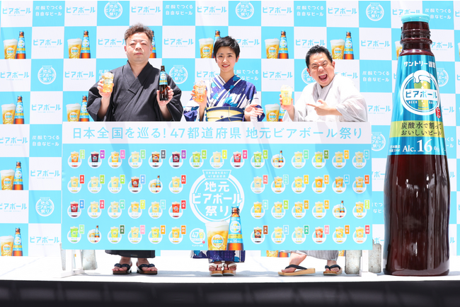 このたび、取り組みの一環として、自由につくって楽しめるビアボールならではの特長を活かし、全国47都道府県のご当地素材などを組み合わせたオリジナルビアボール「地元ビアボール」を楽しめる「日本全国を巡る!47都道府県 地元ビアボール祭り」を今注目のスポット東急歌舞伎町タワー 東側/シネシティ広場にて本日7月6日(木)から7月9日(日)まで期間限定で開催します。開催に先駆け、2023年7月6日(木)11:00より、「ビアボール」のCMに出演中の女優 黒島結菜さんと、芸人 ダイアンさんを迎えた「地元ビアボール祭り」の発表会と体験会を実施しました。